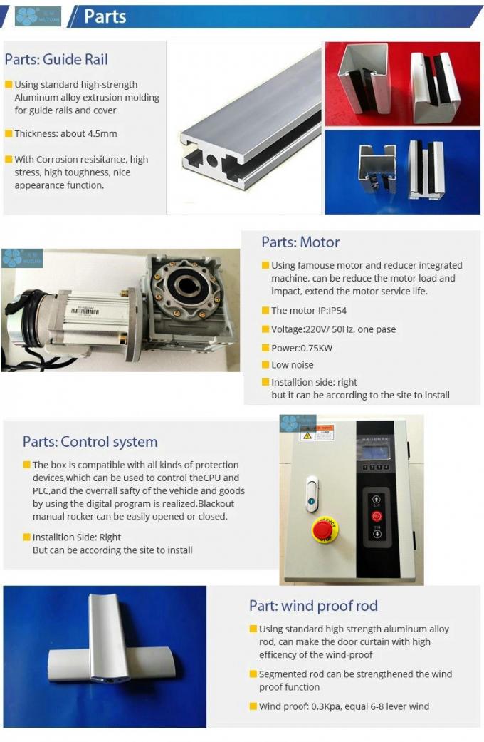 Opening Speed: 0.7~1.2m/S Curtain Thickness: 0.8mm/1.5mm
